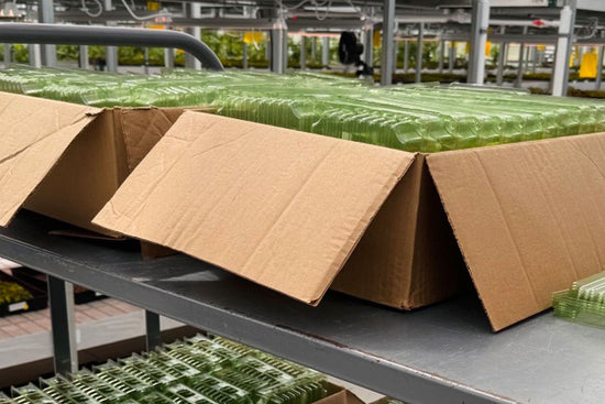 The rock wool surrounding the live plant's roots plays a key role. it’s a lightweight hydroponic material that helps maintain the perfect balance of moisture and oxygen, while also shielding the roots from pests and diseases. Before we ship out each live plant order, we give them a "little bath" so the rock wool has the proper amount of moisture during its journey from the Greenhouse to you!