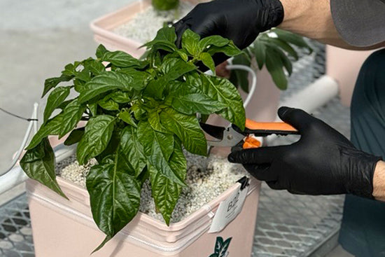 Pruning pepper plants is the practice of selectively cutting off parts of the plant—usually leaves, stems, or early flowers—to improve growth, airflow, and fruit production. Pruning is not a required step but our team has found great value in this process.