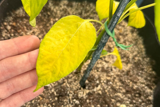 Pepper seeds contain all the nutrients they need for healthy initial growth. There is no need to fertilize your seedlings until they develop 4 to 6 "true leaves" and are several inches tall. At this point, you can begin using fertilizer at quarter-strength, slowly increasing fertilizer strength as they grow. We have several fertilizers we stand by from Mighty Plant: