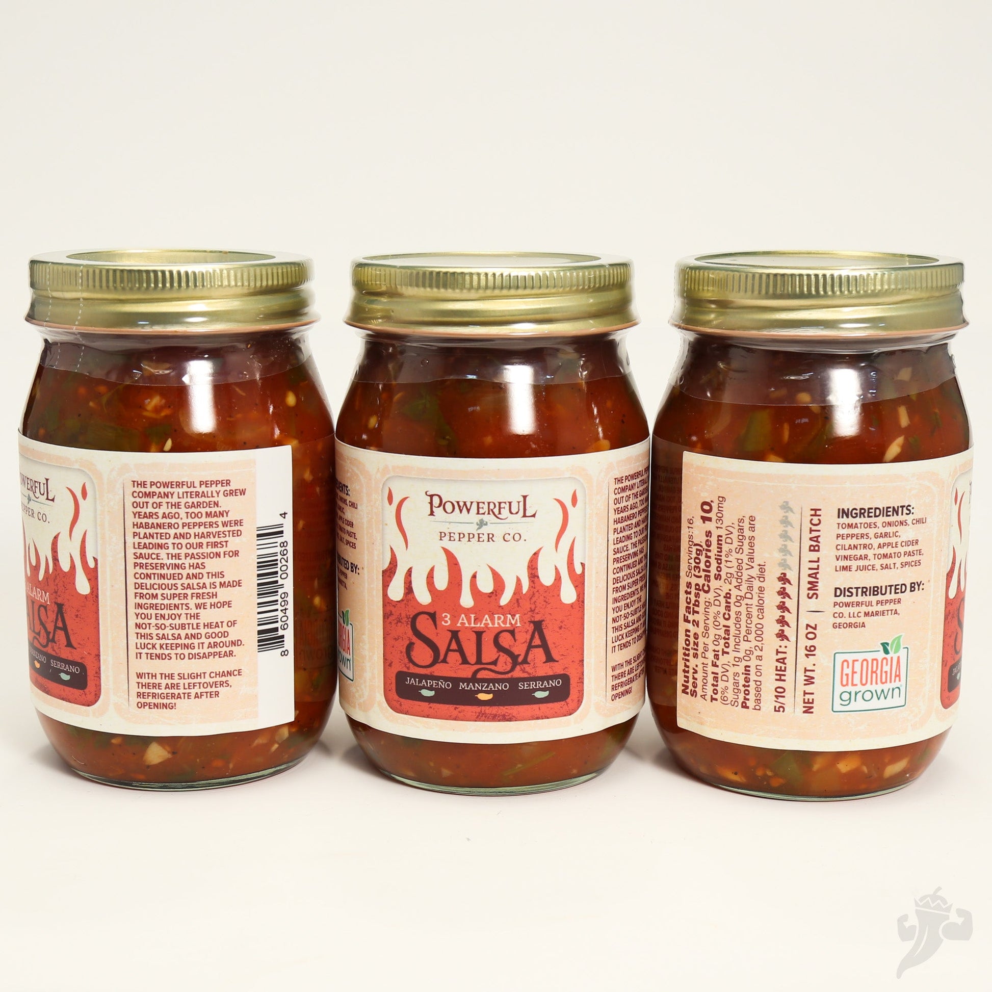 Prepárate para saborear los sabores explosivos de nuestra Salsa 3 Alarmas de Powerful Pepper Company. Imagina esto: Jalapeños crujientes , seleccionados a mano en su punto óptimo de maduración, le dan un sabor familiar a cada bocado. Su sabor intenso y terroso prepara el escenario para la fiesta ardiente que se desatará en tu paladar.