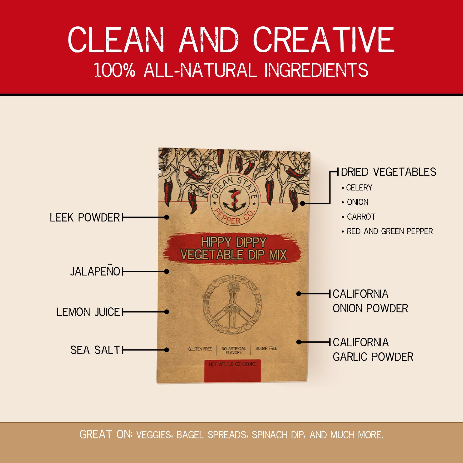 Nuestra versión de una mezcla para dip de verduras de la huerta contiene ingredientes totalmente naturales que dan como resultado sabores vibrantes y limpios que combinan a la perfección con una abundante variedad de verduras frescas. ¿Para qué molestarse en buscar snacks saludables solo para mojarlos en ingredientes que apenas se pueden pronunciar? ¿Para qué sirven? Nuestra suposición es tan buena como la tuya. Esta sencilla mezcla contiene verduras deshidratadas y una combinación de condimentos que puedes entender y disfrutar.