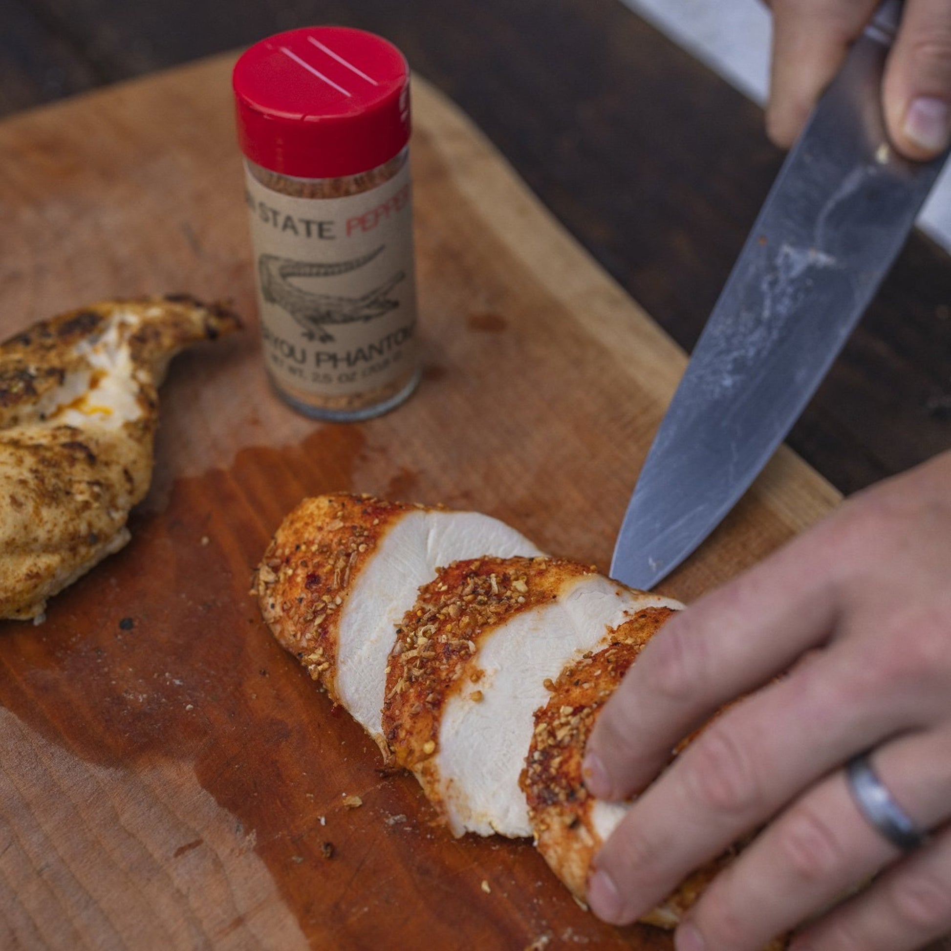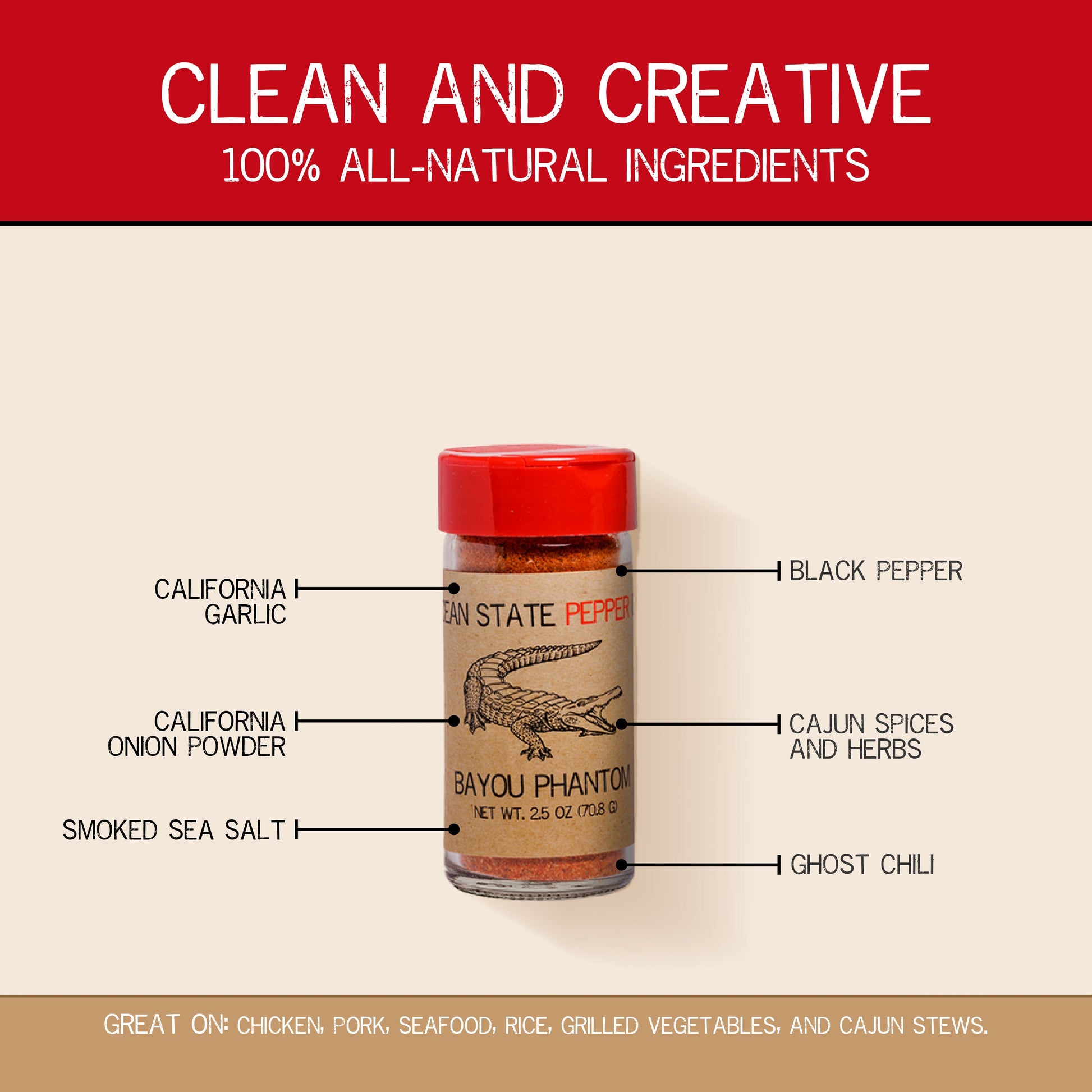 This can be used as a fantastic blackening spice for fish of all varieties! We love to sprinkle this blend generously on some well buttered corn on the cob. For a classic creole barbeque, don't be afraid to season your ribs, chicken wings, or other items destined for the grill with a good dose of Bayou Phantom. Paella, etouffee, gumbo, jambalaya... we endorse a good shot of heat into classic cajun dishes. Another great idea is using Bayou Phantom in a crab, crawfish, or shrimp boil.