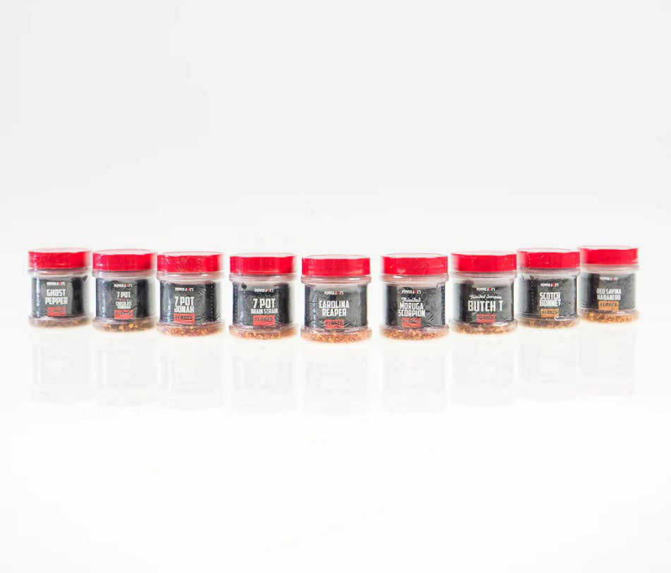 The Carolina Reaper is one of the hottest peppers in the world with a whopping heat level of 1,569,300 SHUs, but individual peppers are known to reach up to 2,200,000 SHUs. To create one of the hottest spices out there, we used 100% Carolina Reaper peppers and SMASHED THEM INTO EDIBLE FLAKES. Don't miss out on the Reaper's scorching lava heat and smoky, fruity flavors.