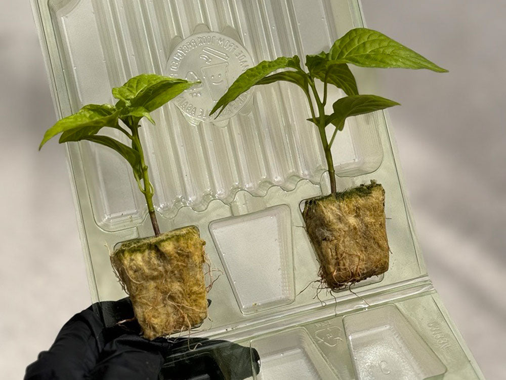 Our live pepper plants are safely shipped in our 100% recyclable custom plant packaging. Rock wool is used to keep a protective layer around the seedling's roots for close-to-ideal levels of moisture and oxygen.