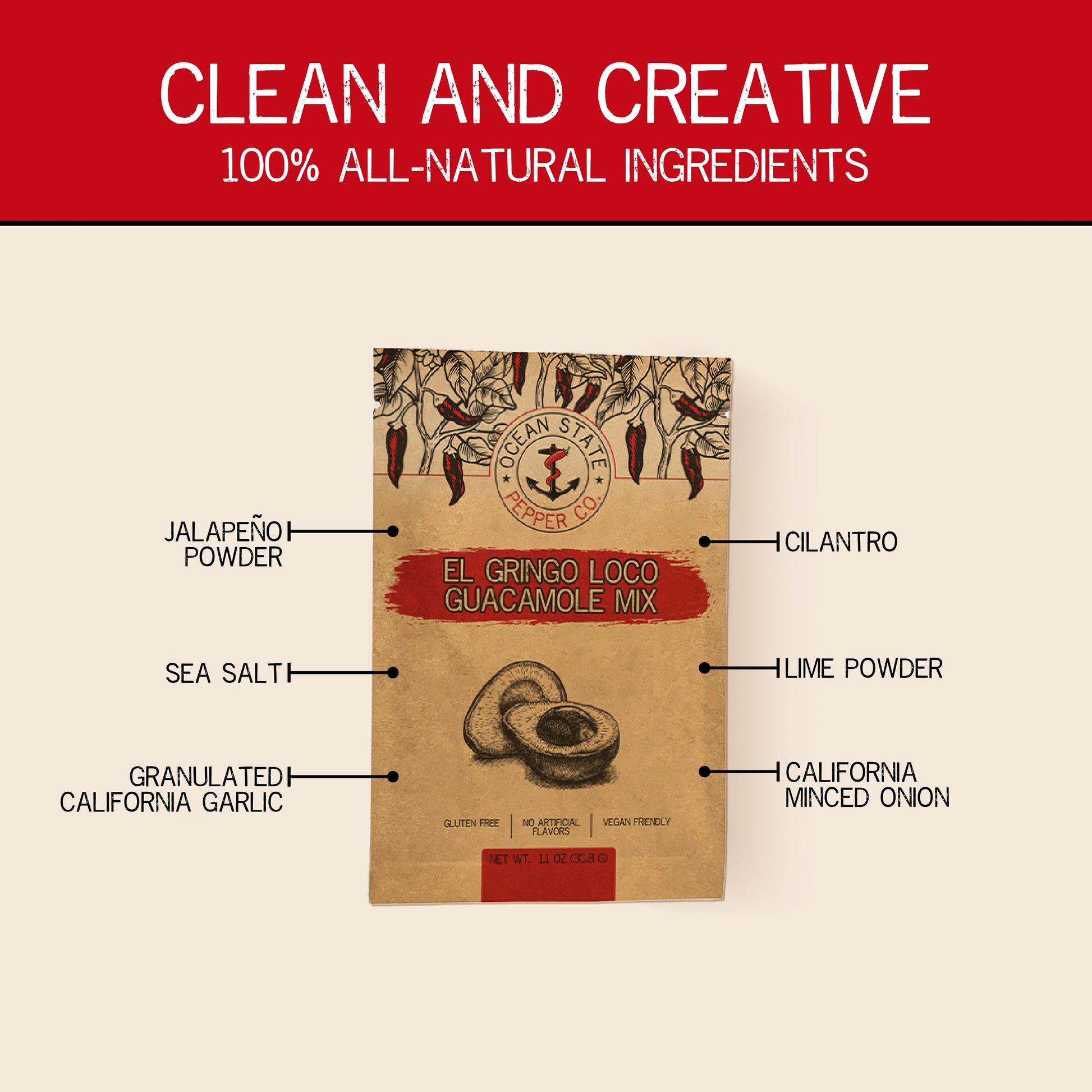 We have put together a great blend of Mexican herbs and spices combined with lime juice, and just enough jalapeno pepper for a great dip, quick and easy for whenever the mood strikes. All that we ask is that you provide the fresh avocados. Turns out those are harder to put into the pouches than we originally expected.