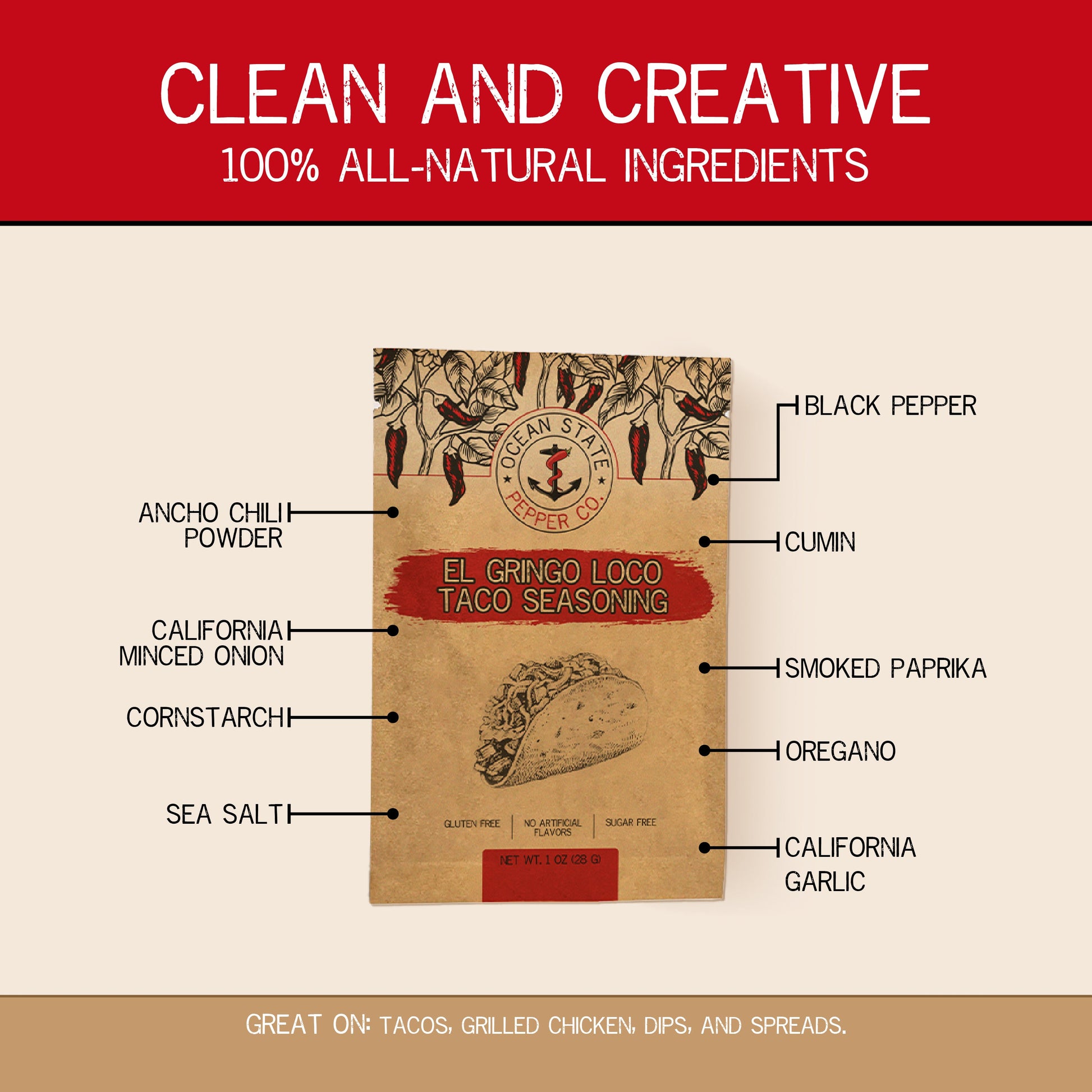 Search no further. We have crafted up a fantastic blend of herbs and spices specifically designed to take your taco night to another level. This three step pour-and-go packet is good for seasoning any sort of taco filling, be it ground beef, turkey, vegetables, etc. Flavors of New Mexican chiles, jalapenos, and smoked paprika showcase the wonderful pepper nuance that we live for, and we hope you do to! As always, no artificial flavors, colors, preservatives, gluten...any of that. We believe in all-natural, top quality ingredients.