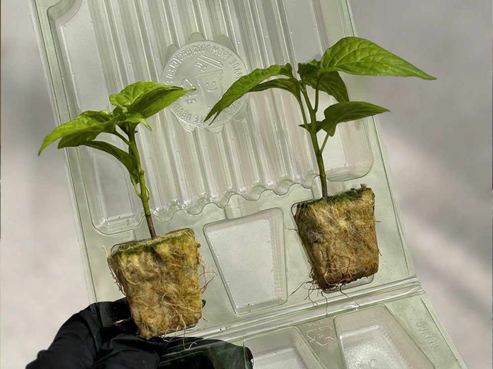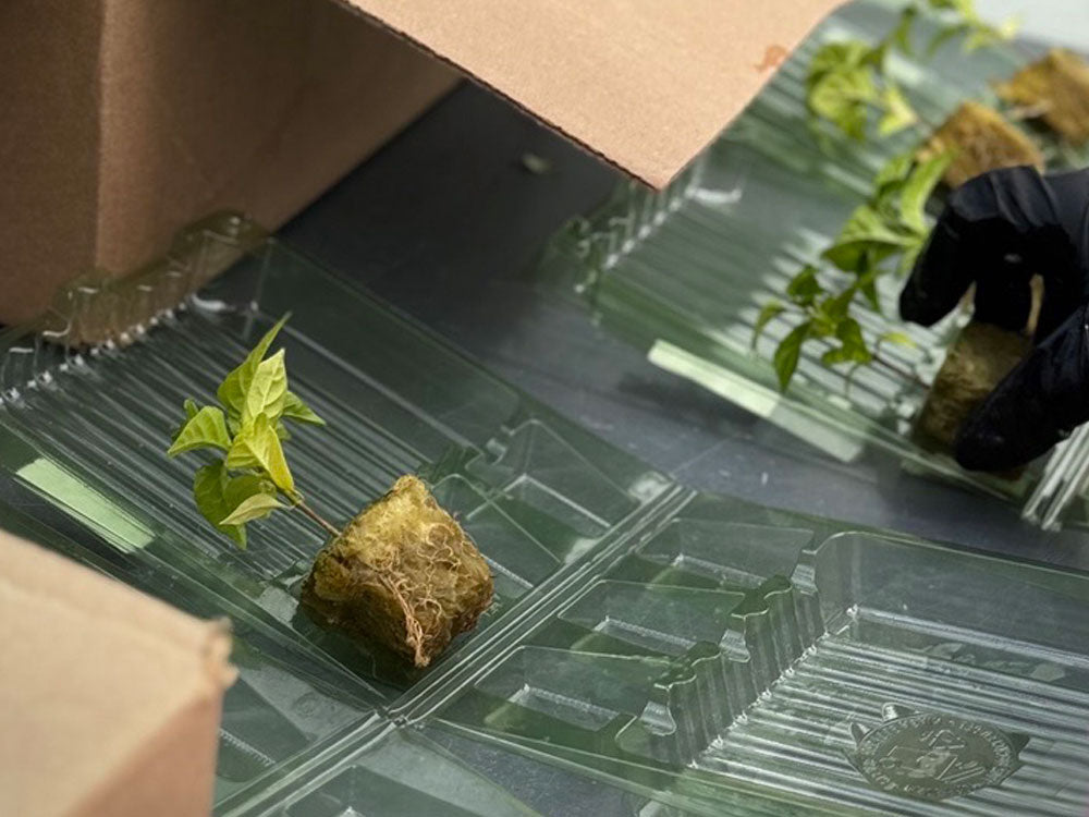 Our live pepper plants are safely shipped in our 100% recyclable custom plant packaging. Rock wool is used to keep a protective layer around the seedling's roots for close-to-ideal levels of moisture and oxygen.