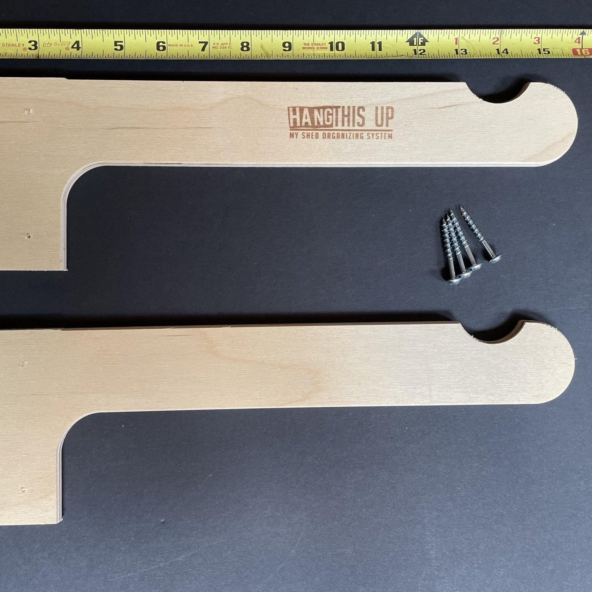 Designed with our exclusive “stud mount” system for extra strength, these organizers self-level when pressed against your shed’s exterior sheathing. Hangthis Up products are custom-crafted to perfectly fit the specific items you store, creating a neat and professional look once installed.