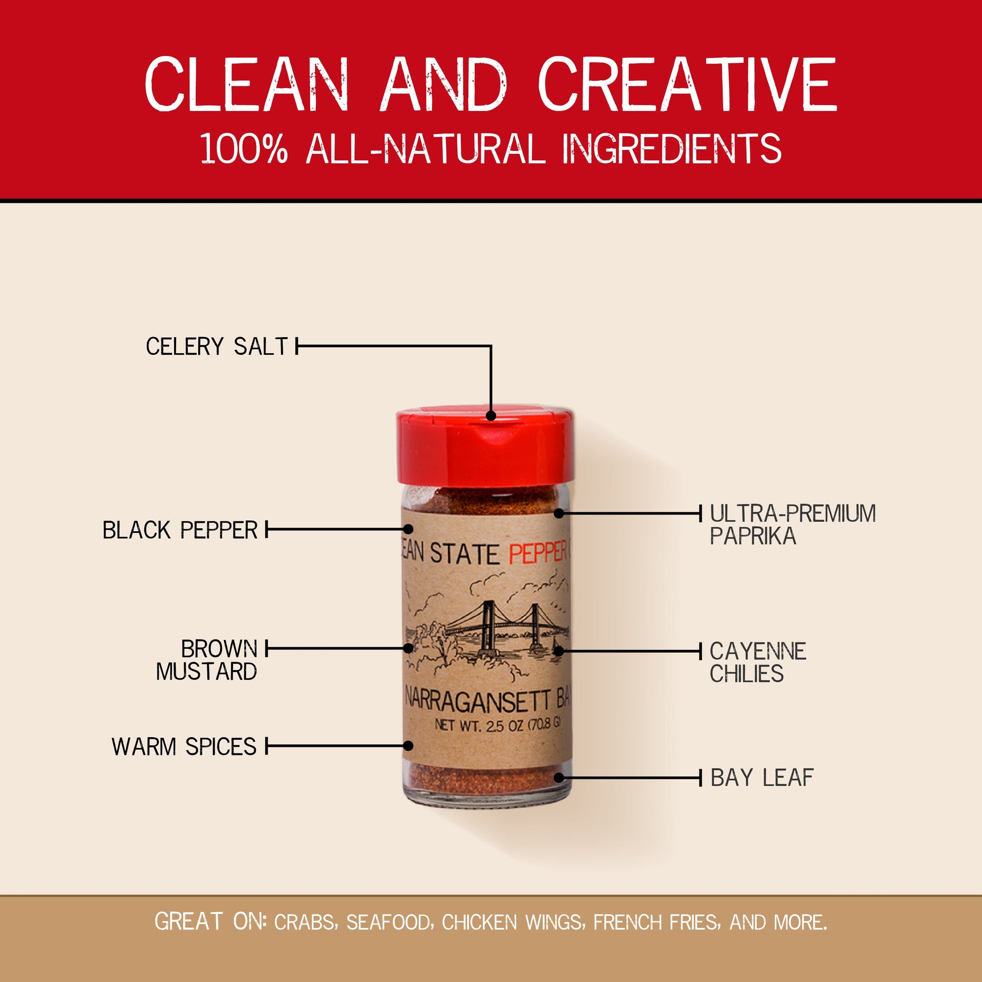 Besides being a 'must have' for your next clam bake, we have found incredible success when using this blend in poaching liquid for shrimp, crabs, and lobster. Need more? Make a better tuna salad sandwich with just a few shakes...or even try some Chesapeake-style ribs, or heavily dusted chicken wings. Thirsty? Spice up that Bloody Mary and pile on the toppings. Who says a drink can't be a meal?
