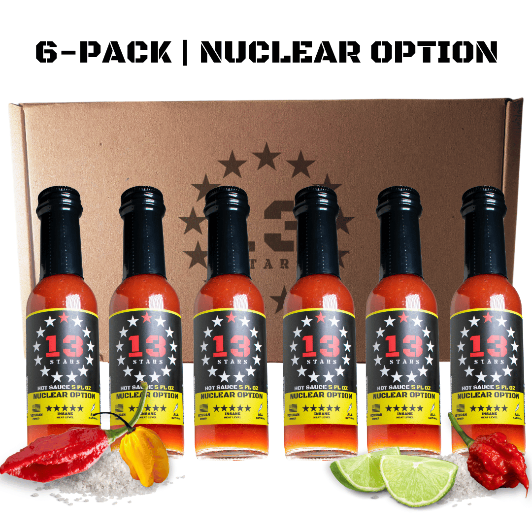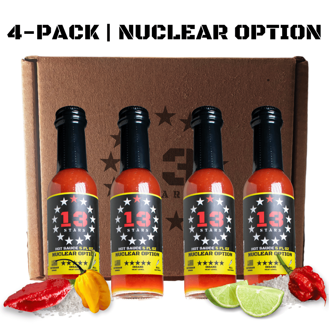 Not for the faint of heart. This is Nuclear Option; Diabolical in nature and crafted from some of the hottest peppers within the world. An intense ramping heat; with a sauce full of Carolina Reapers, Ghost Peppers, and habaneros. The heat will be checking into your pain receptors and taking you for a wild ride.