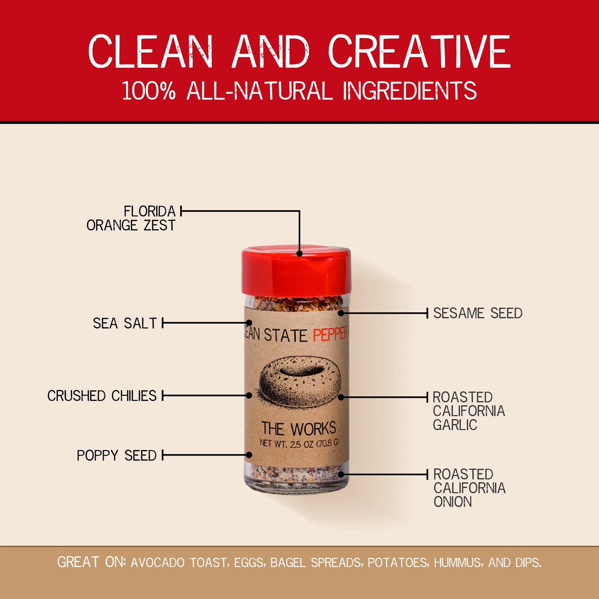 Everything-crusted salmon or air-fried chicken wings, this rub is clearly for so much more than breakfast. Custom cream cheese spreads for bagels, or even a shake for your next salad. Want to get really wild? Toss it with oil and cubed bread and make everything croutons! Oh yeah...Avocado Toast. I was told I had to mention that one.