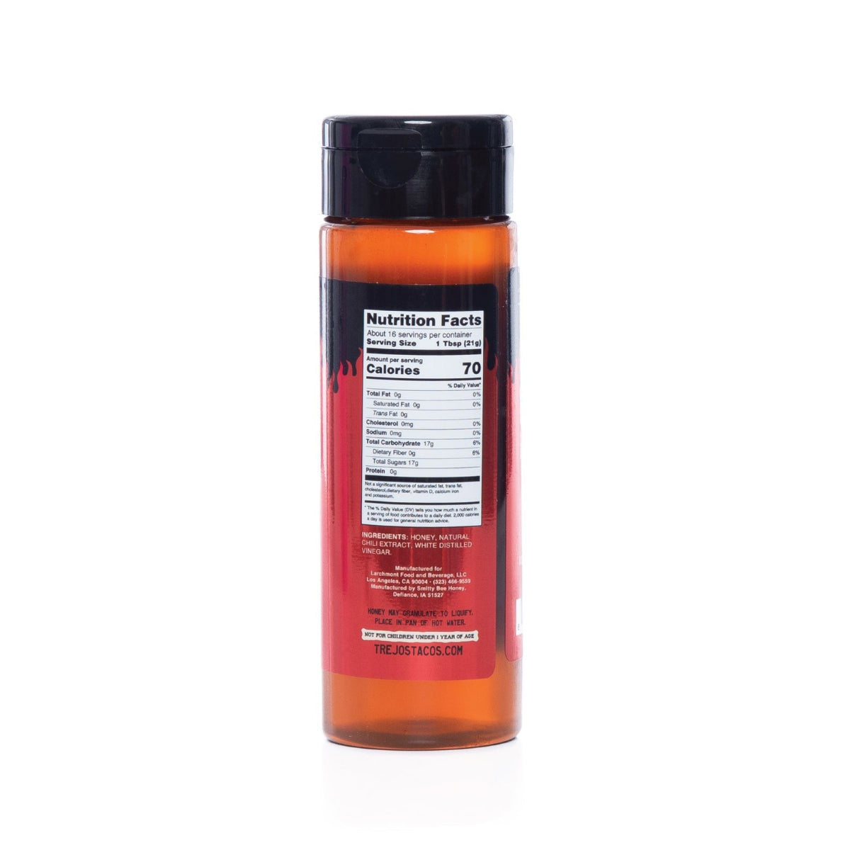 Trejo's Hot Honey is a natural combination of sweet and spicy, blending honey with chili peppers to add a perfect kick to your favorite dishes. Great on a variety of foods such as pepperoni pizza, oatmeal, ice cream, fried chicken, and BBQ. You can also pair it with your preferred cheese or use it to sweeten your tea or cocktail. This gluten-free and all-natural 12 oz product contains no artificial sugar or preservatives.